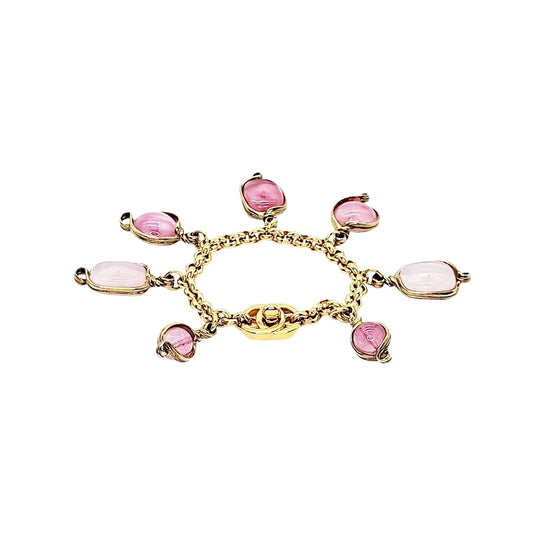Chanel Vintage Gold-tone & Pink Gripoix 96P Charm Bracelet