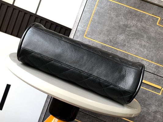 CHANEL Vintage Hobo Bag 30cm Black Lambskin Silver Hardware