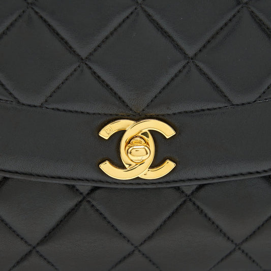 Chanel Vintage Medium Diana Flap Bag Lambskin Black GHW