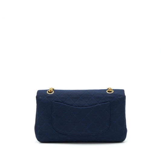 Chanel Vintage Medium Classic Double Flap Bag Fabric Navy GHW