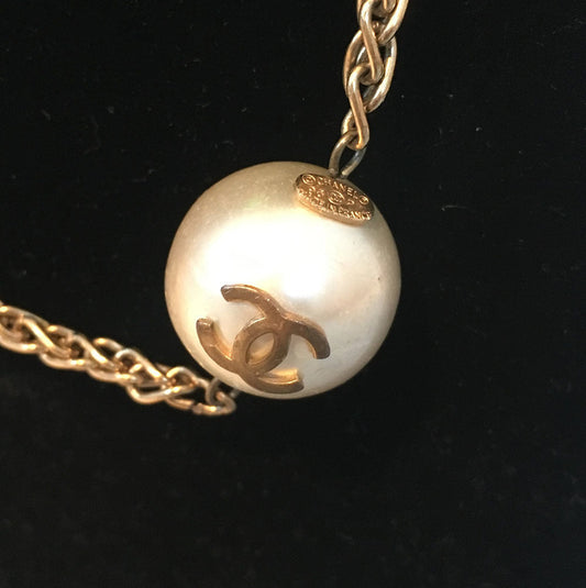 Chanel Vintage Large Pearls and Green and Purple Crystal Bead Gold Necklace