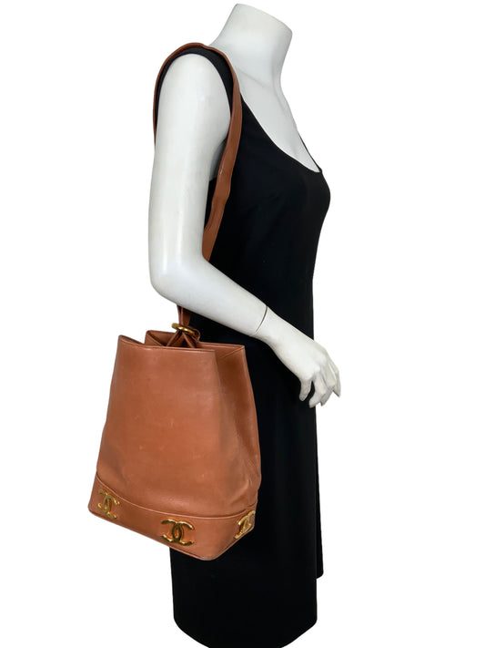 CHANEL Vintage Leather CC Logo Bucket Bag
