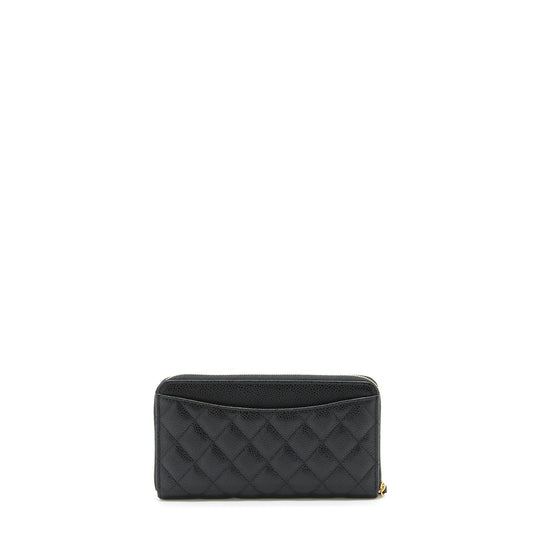CHANEL Zip Around Quilted Caviar Leather Wallet Black