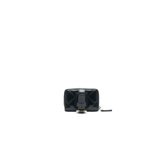 CHANEL zipped wallet 14cm black lambskin gold hardware