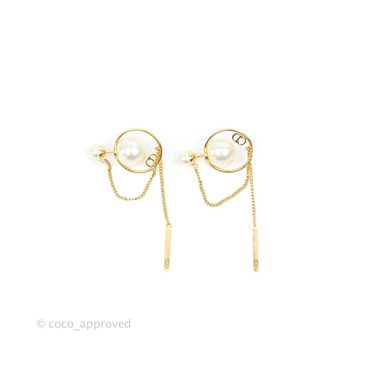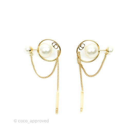 Christian Dior CD Pearl Long Drop Earrings Gold Tone