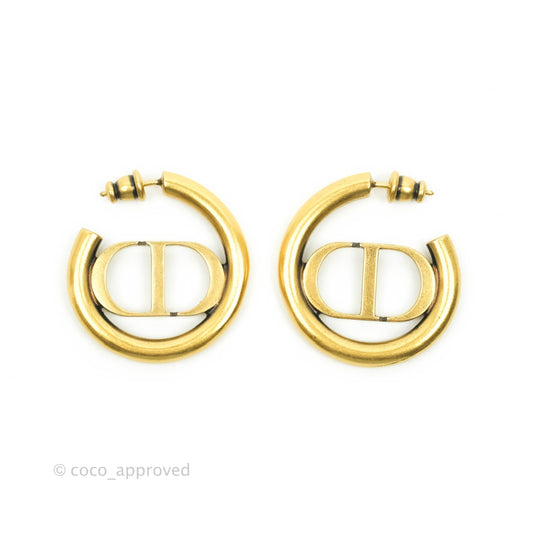 Christian Dior 30 Montaigne Hoop Earrings Antique Gold-Finish