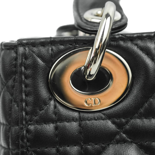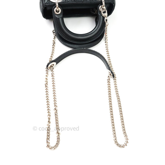 Christian Dior Cannage Mini Lady Dior Black Silver Hardware
