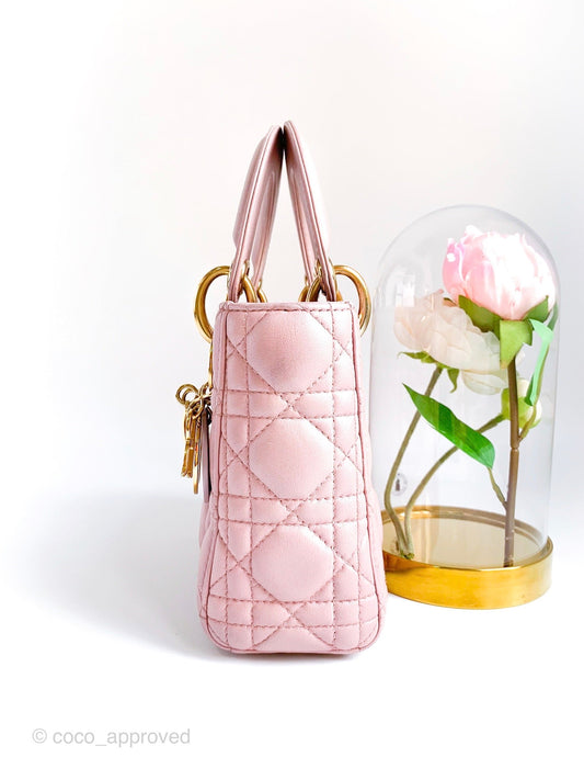 Christian Dior Cannage Mini Lady Dior Iridescent Light Pink Gold Hardware
