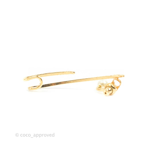 Christian Dior Faux Pearl & Crystal Ear Cuff Gold Tone
