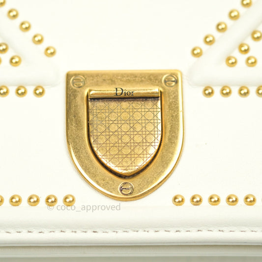 Christian Dior Diorama Wallet on Chain in White Calfskin Studded Gold