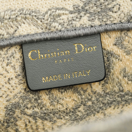 Christian Dior Medium (Old Small) Embroidered Toile De Jouy Light Grey Canvas Book Tote