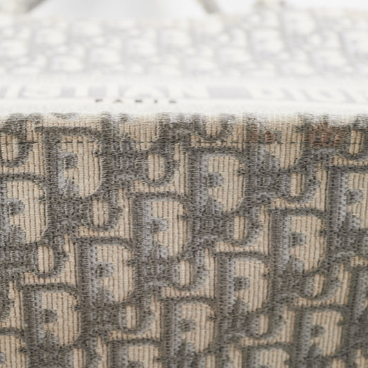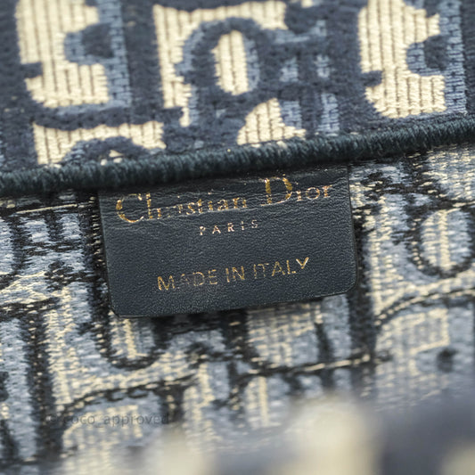 Christian Dior Medium Blue (Old Small) Dior Oblique Embroidery Canvas Book Tote