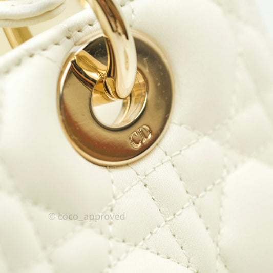 Christian Dior Lambskin Medium Lady Dior Ivory White Gold Hardware