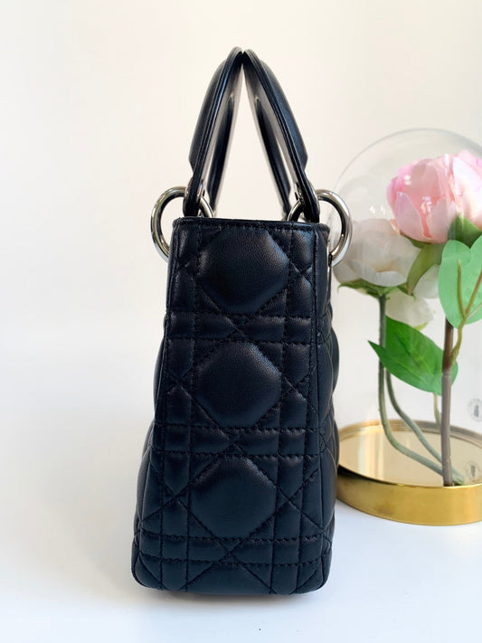 Christian Dior Lambskin Cannage Mini Lady Dior Black (2 Straps)