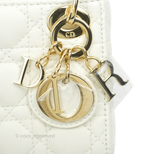 Christian Dior Micro Lady Dior Cannage Ivory White Lambskin Gold Hardware