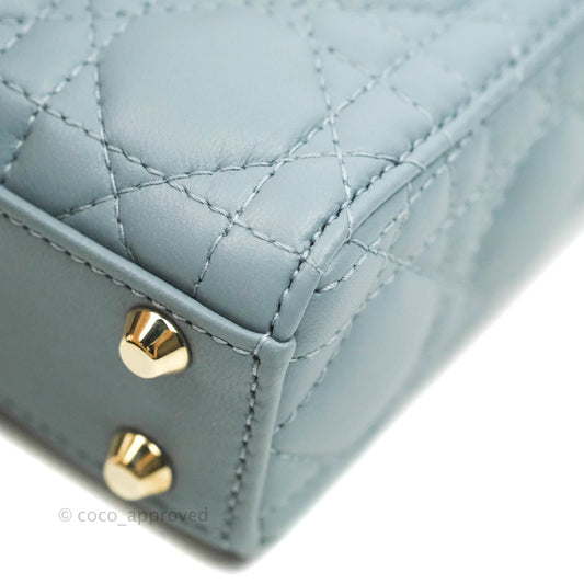 Christian Dior Micro Lady Dior Cannage Blue Grey Lambskin Gold Hardware