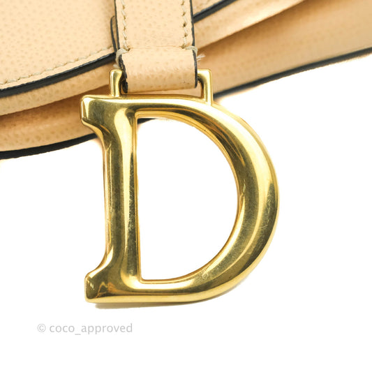 Christian Dior Mini Saddle Bag Beige Grained Calfskin Gold Hardware With Strap