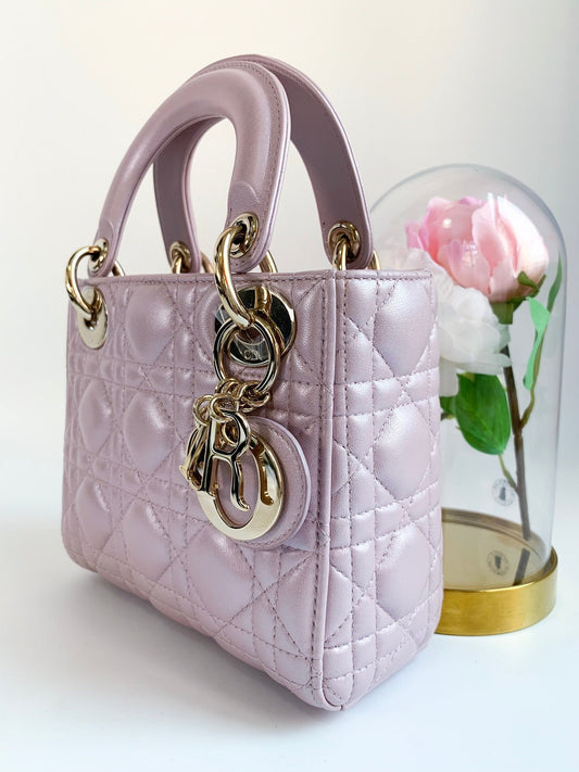 Christian Dior Mini Lady Dior Iridescent Light Pink Cannage Gold Hardware