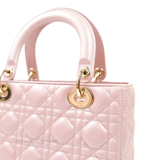 Christian Dior Medium Lady Dior Pink Lambskin Gold Hardware