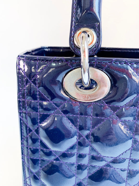 Christian Dior Patent Cannage Medium Lady Dior Navy Blue Silver Hardware