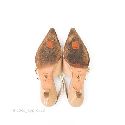 Christian Dior Patent J'adior Ribbon Slingback Pumps 36.5 Beige