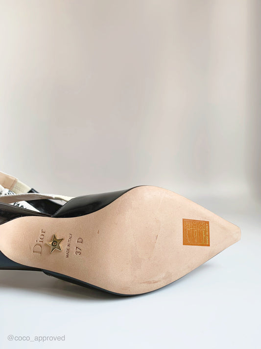 Christian Dior Patent J'adior Ribbon Slingback Pumps 37 Black