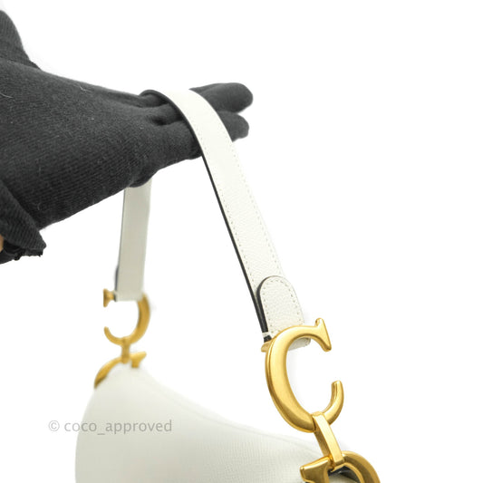 Christian Dior Saddle Bag White Grained Calfskin Gold Hardware