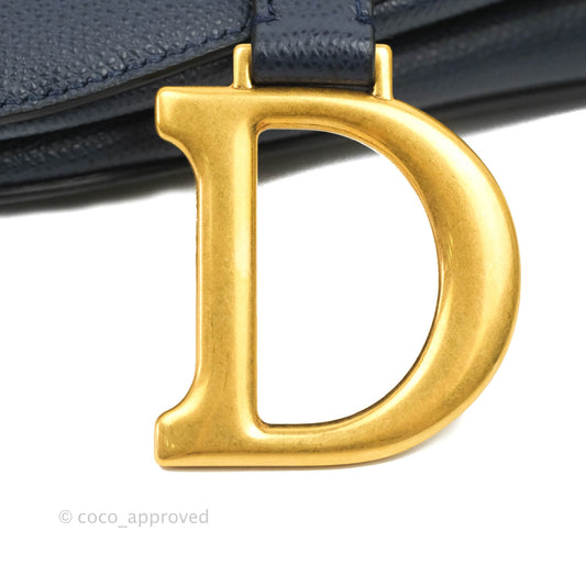 Christian Dior Saddle Bag Navy Grained Calfskin Gold Hardware