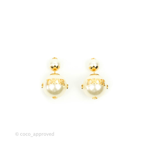Christian Dior Tribales Pearl Earrings Gold Tone