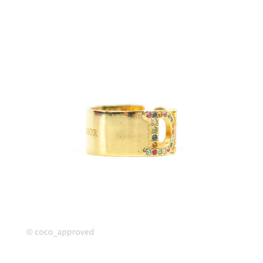 Christian Dior Rainbow Crystal Ring Gold Tone Size L