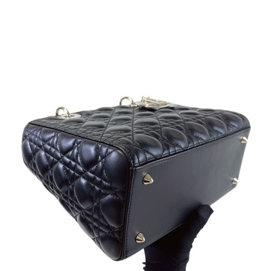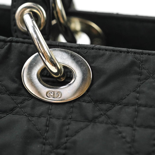 Christian Dior Vintage Large Cannage Fabric Black Lady Dior Silver Hardware