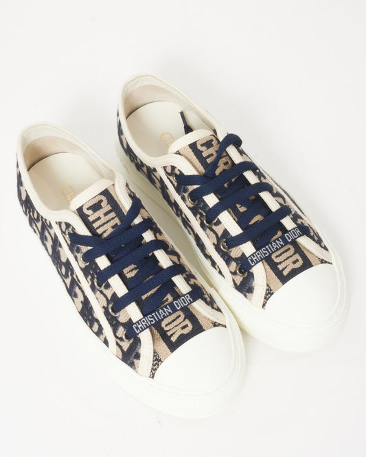 Dior Blue & Cream Oblique Canvas Walk'N'Dior Low Top Sneakers - 35.5