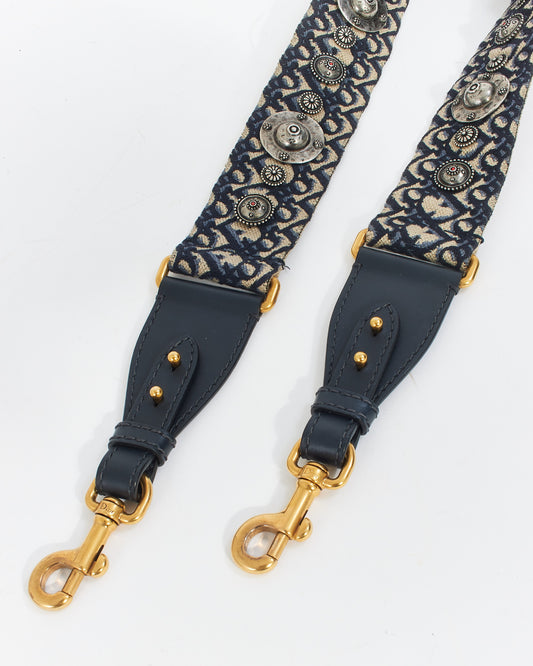 Dior Blue Dior Embroidered Oblique Canvas Studded Shoulder Strap