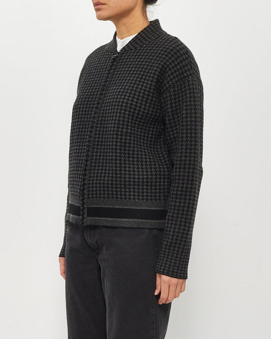 Dior Black/Grey Houndstooth Cashmere Zip Up Sweater - 6US