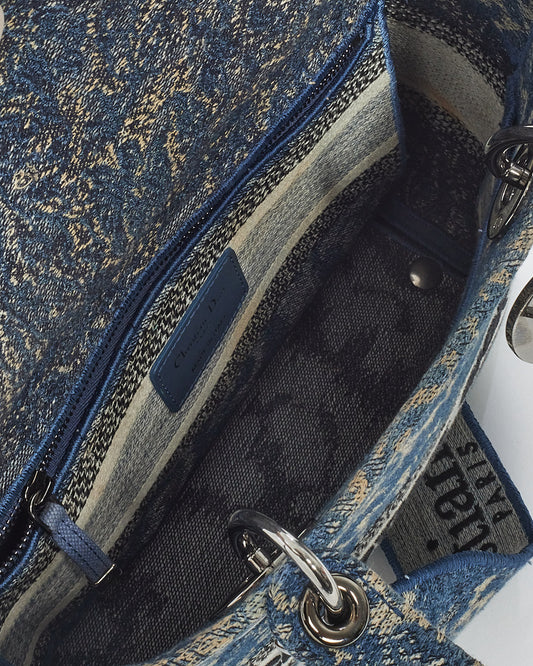 Dior Blue Denim Jardin Magique Embroidery Canvas Medium Lady D-Lite Bag