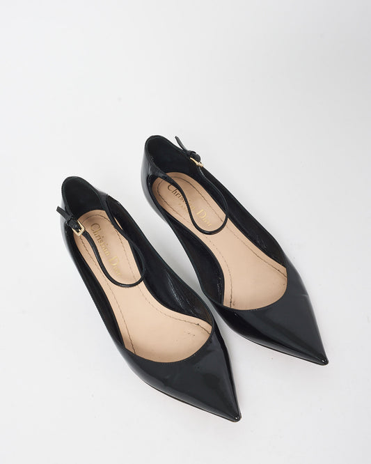 Dior Black Patent Leather Ankle Strap Kitten Heels - 36.5