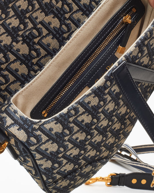 Dior Blue Canvas Oblique Jacquard Saddle Bag