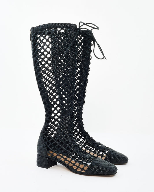Dior Black Woven Leather Naughtily-D Fishnet Lace Up Boots - 37