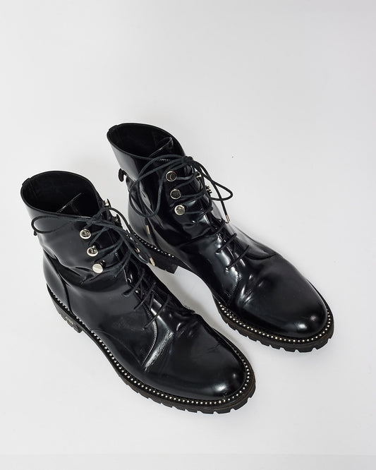 Dior Black Patent Leather Combat Rebelle Boots - 38