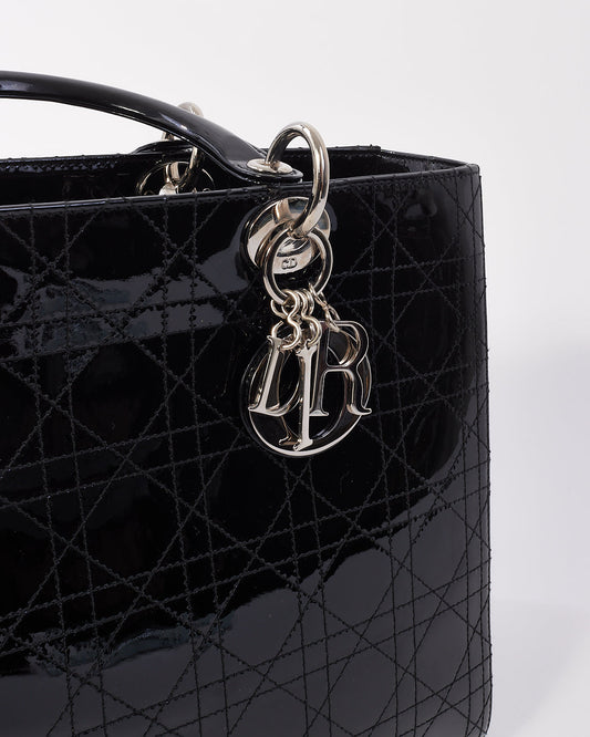 Dior Black Patent Cannage Calfskin Large Lady Dior Bag