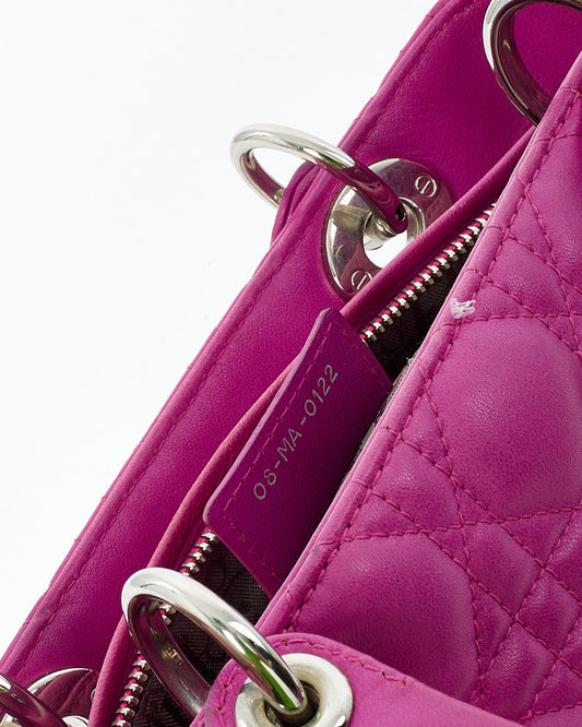 Dior Fushia Cannage Leather Medium Lady Dior