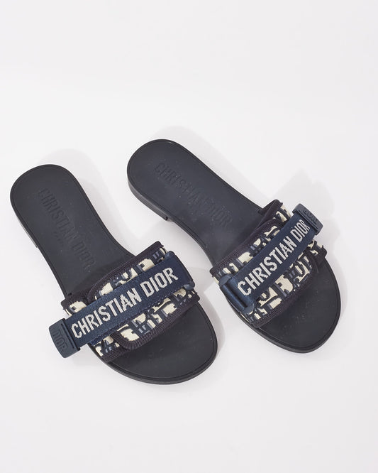 Dior Deep Blue Oblique Nylon Diorevolution Slides - 36