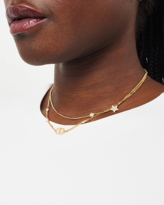 Dior Gold-Finish Metal and White Crystals Petit CD Double Necklace