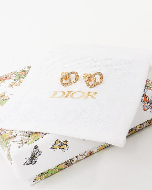 Dior Gold Crystal Petit CD Logo Stud Earrings