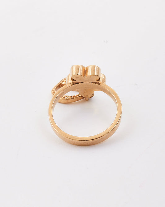 Dior Gold Tone Metal Flower Crystal Rose D Charm Ring -6