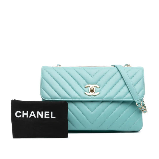 Blue Chanel Chevron Lambskin Trendy CC Flap Shoulder Bag