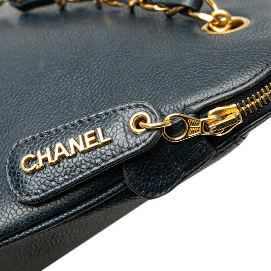 Blue Chanel CC Quilted Caviar Top Handle Vanity Case with Chain