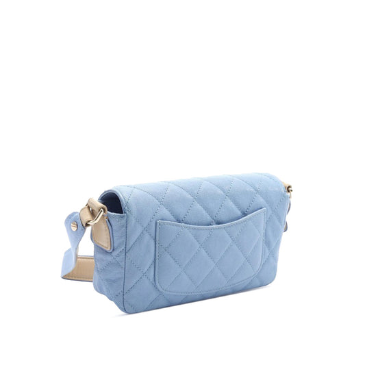 Blue Chanel CC Quilted Lambskin Double Flap Shoulder Bag