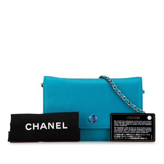 Blue Chanel CC Quilted Iridescent Caviar Wallet on Chain Crossbody Bag
