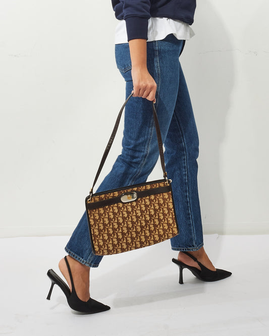 Dior Vintage Brown Oblique Canvas Shoulder Bag